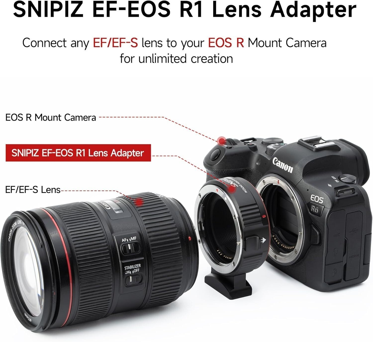 Adaptateur d’objectif|Monture EF à boitier EOS R1|Autofocus|SNIPIZ