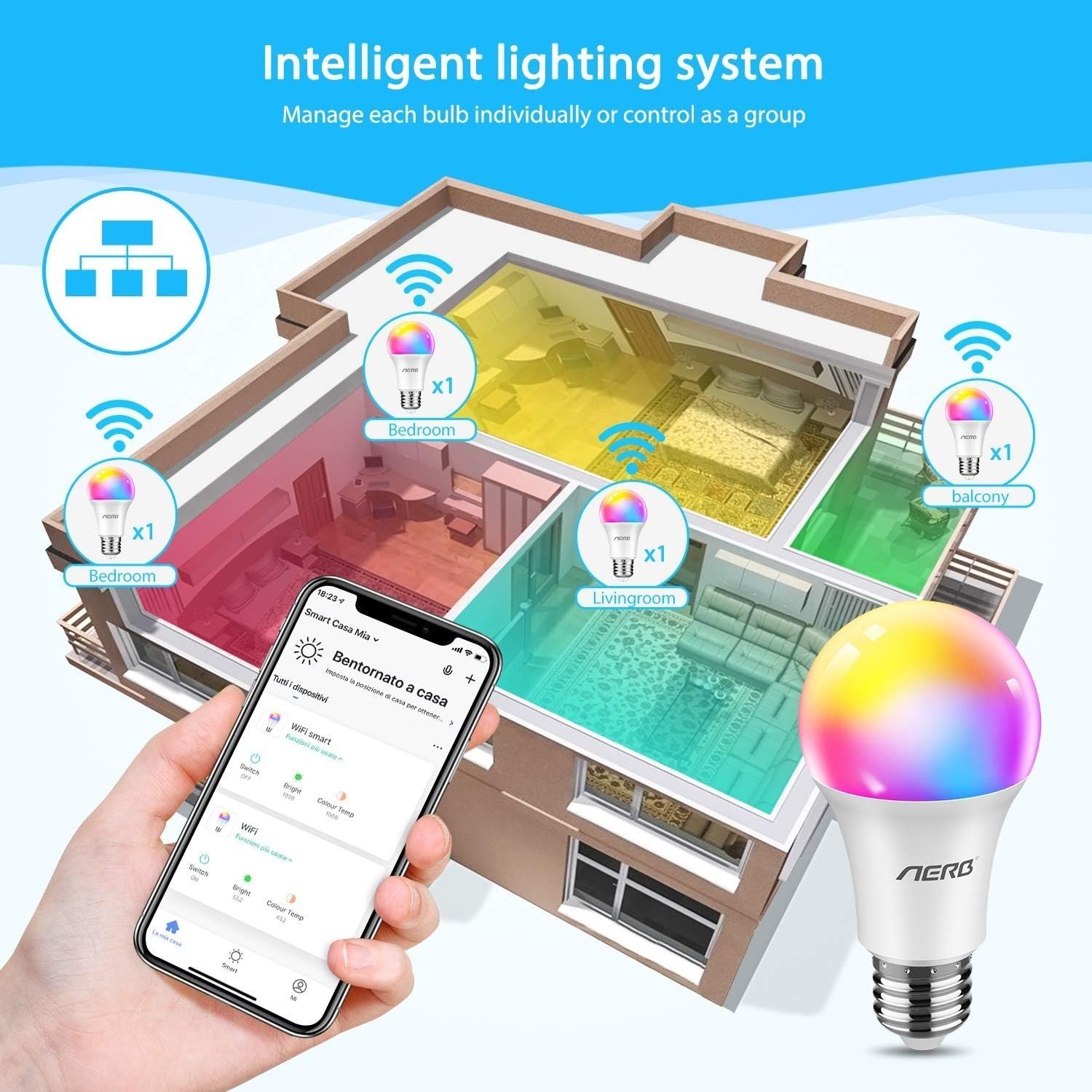 Ampoule connectée AERB│Lot de 2│Smart WiFi E27 Multicolore│Contrôle vocal Alexa