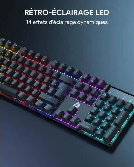 AUKEY KM-G16 Clavier Mécanique Gaming RGB LED 104 Touches Blue Anti-Ghosting