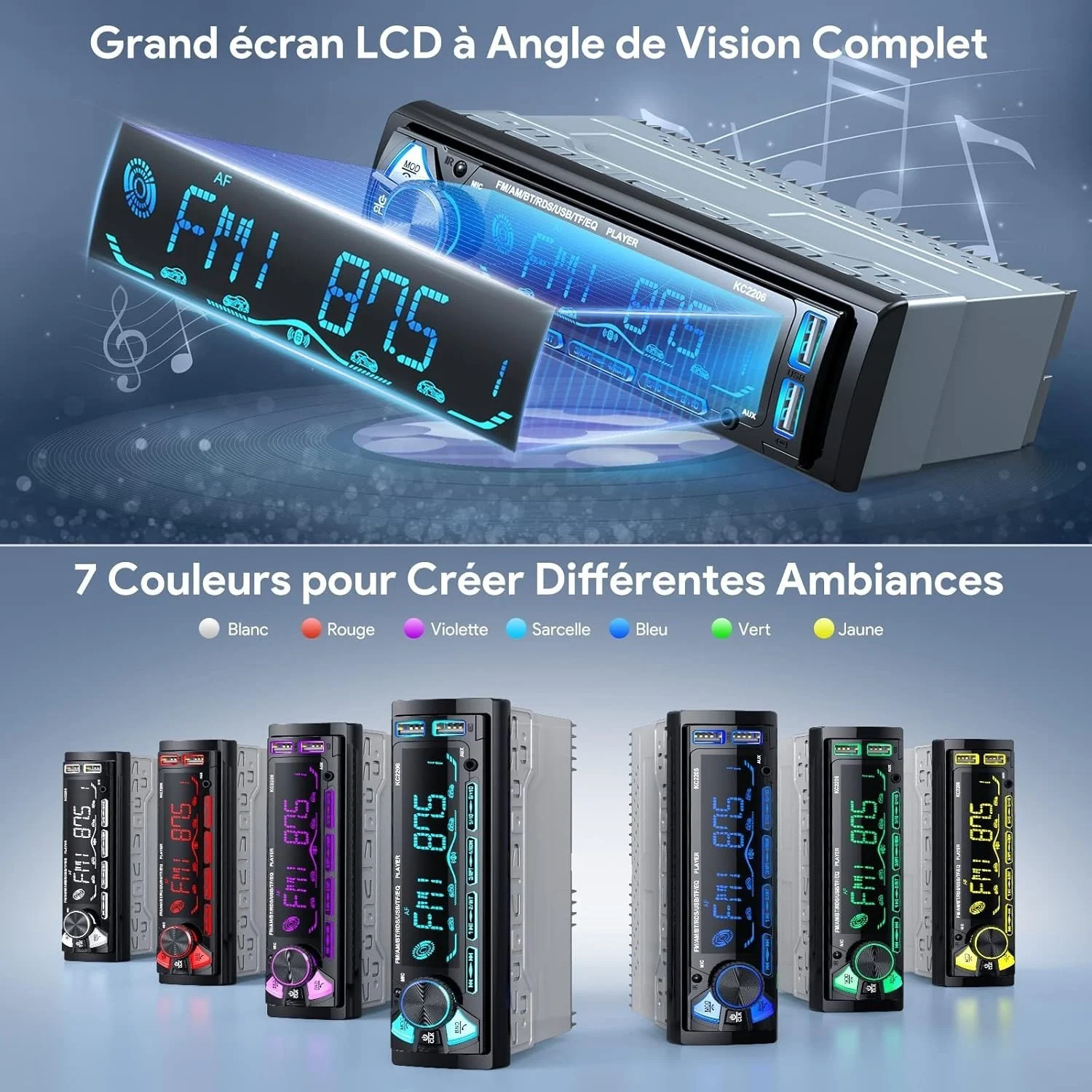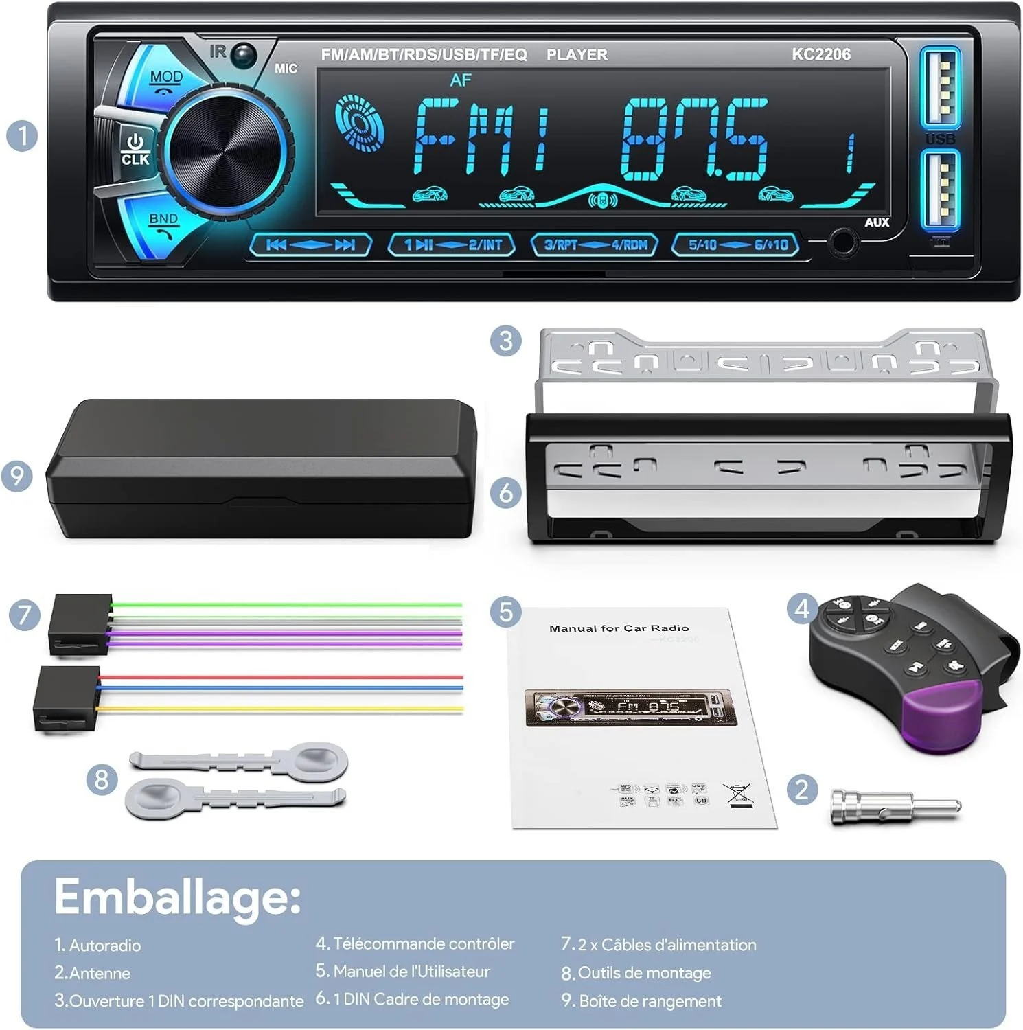 🔊 Autoradio Bluetooth 1 DIN Wistrue – Puissance, Sécurité et Confort Améliorez instantanément votre expérience de conduite avec cet autoradio moderne et universel, conçu pour offrir un son puissant, une connectivité complète et une utilisation simple au quotidien. 🚗 ✨ Fonctionnalités principales : Bluetooth 5.0 intégré pour appels mains libres et streaming audio Façade amovible anti-vol pour plus de sécurité Radio FM/AM avec système RDS (jusqu’à 30 stations) Double port USB (charge rapide + lecture musique) Lecture MP3 via USB / SD / AUX Égaliseur 8 bandes pour un son personnalisé Éclairage LED 7 couleurs Puissance audio 4x65W 📱 🔐…