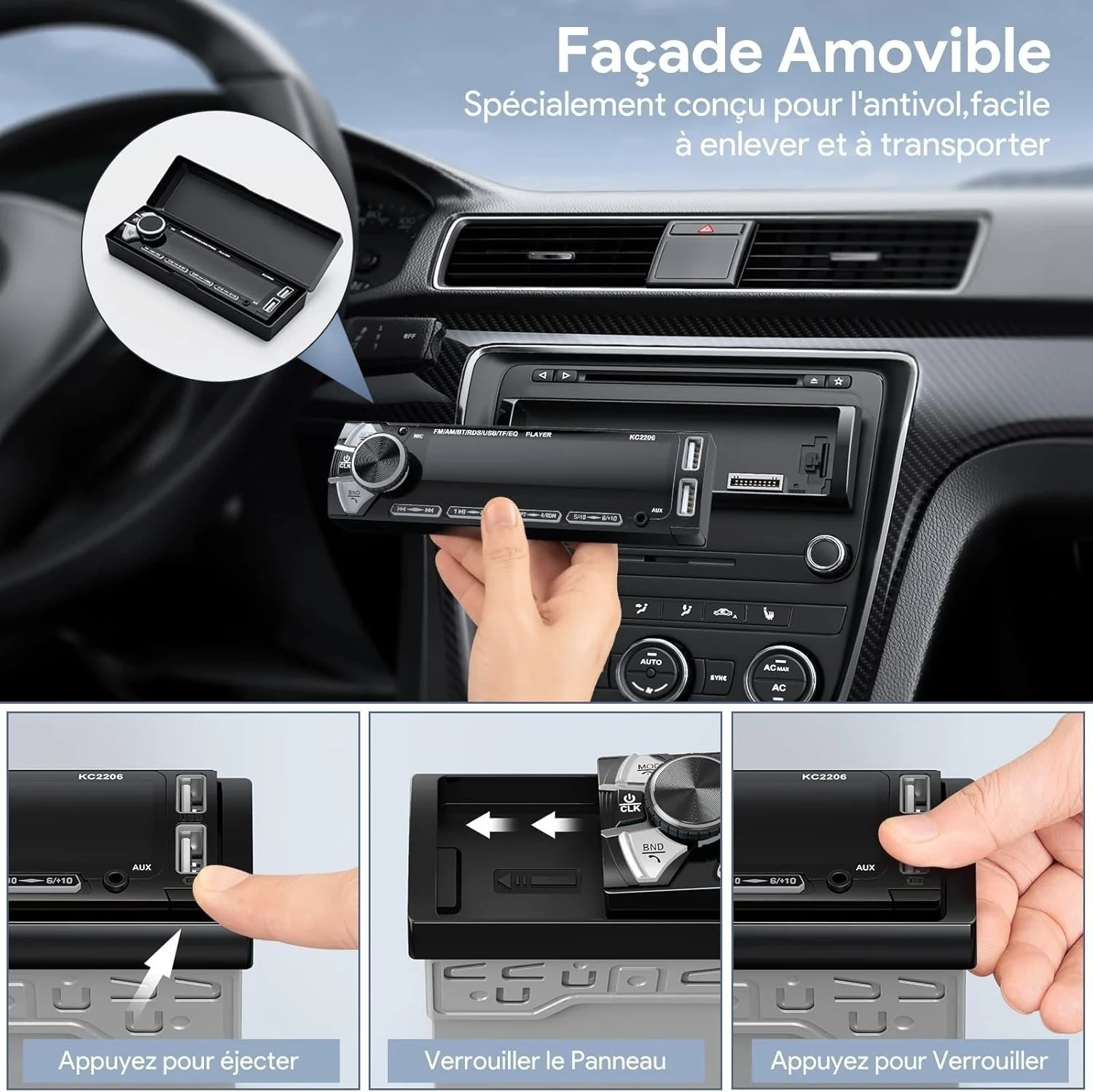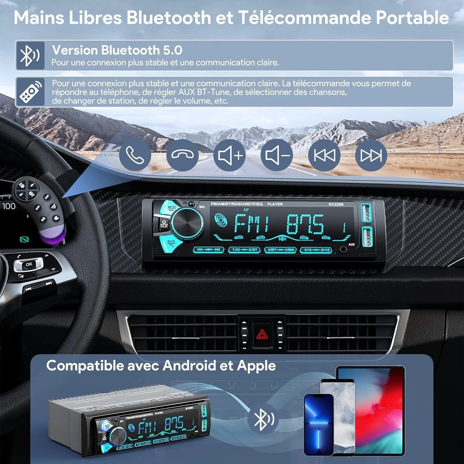 Modèle de: Compatible avec tous les véhicules 12V avec emplacement 1 DIN sta