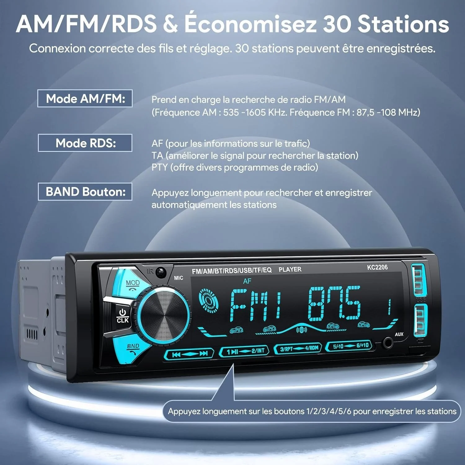 Caractéristiques: Autoradio RDS FM AM, affichage digital, recherche automatique, st