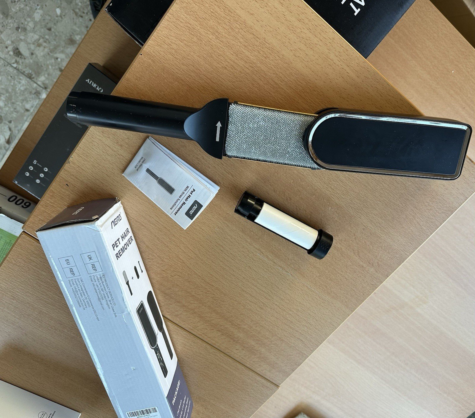 Conçue par Aerb, cette brosse est idéale pour éliminer les poils morts et les poils  du pelage de votre animal.    Epilateur au cuivre : utilisé pour gratter les grosses et petites boules de poils Chiffons d’épilation : utilisé pour brosser les poils déchiquetés, les poils d’animaux , la poussière et les pettes boules de poils Brosse : les chats , les chiens, convient à toutes sortes d’animaux à poils Rouleaux anti – peluches : utilisé pour coller les poils plus fins, les poils d’animaux, la poussière et les petites boules de poils sur la surface Cette brosse anti-peluches réutilisable…