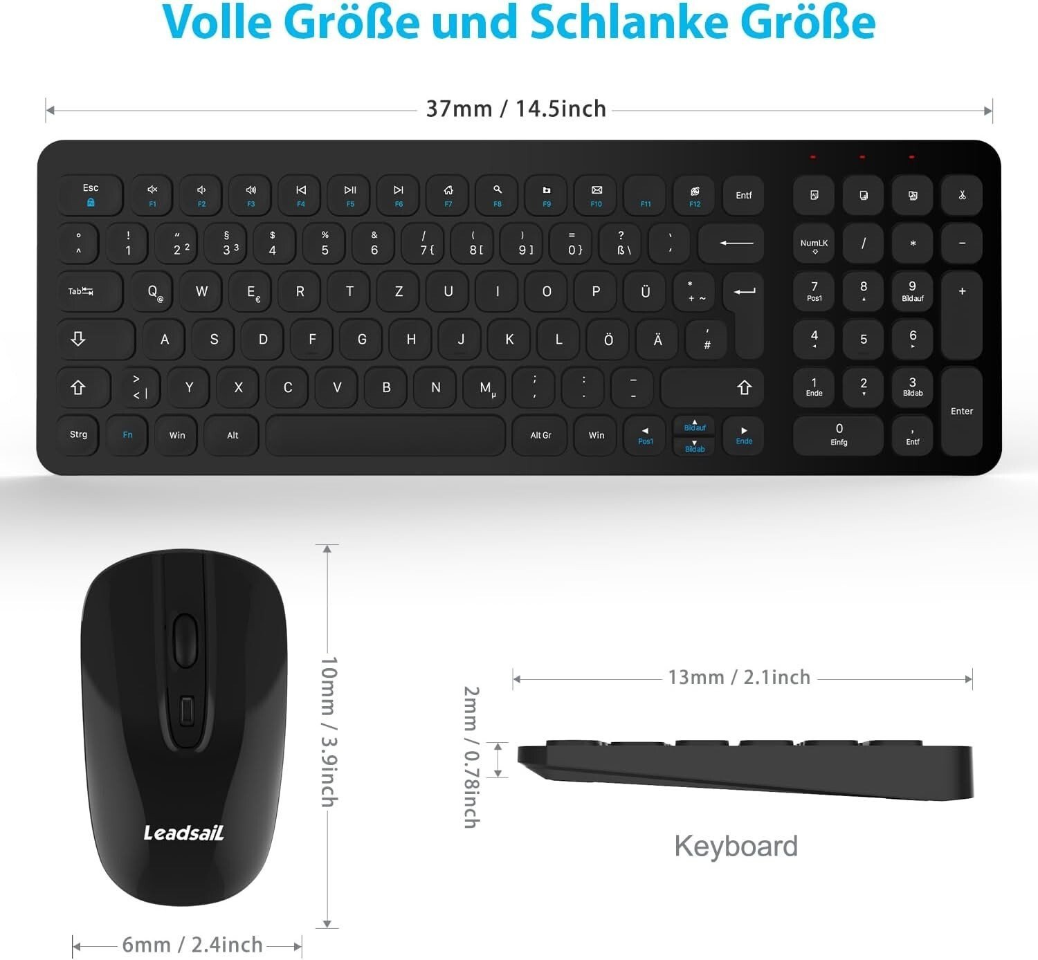 Clavier et souris sans fil, 2,4 GHz QWERTZ souris silencieuse sans fil Leadsail