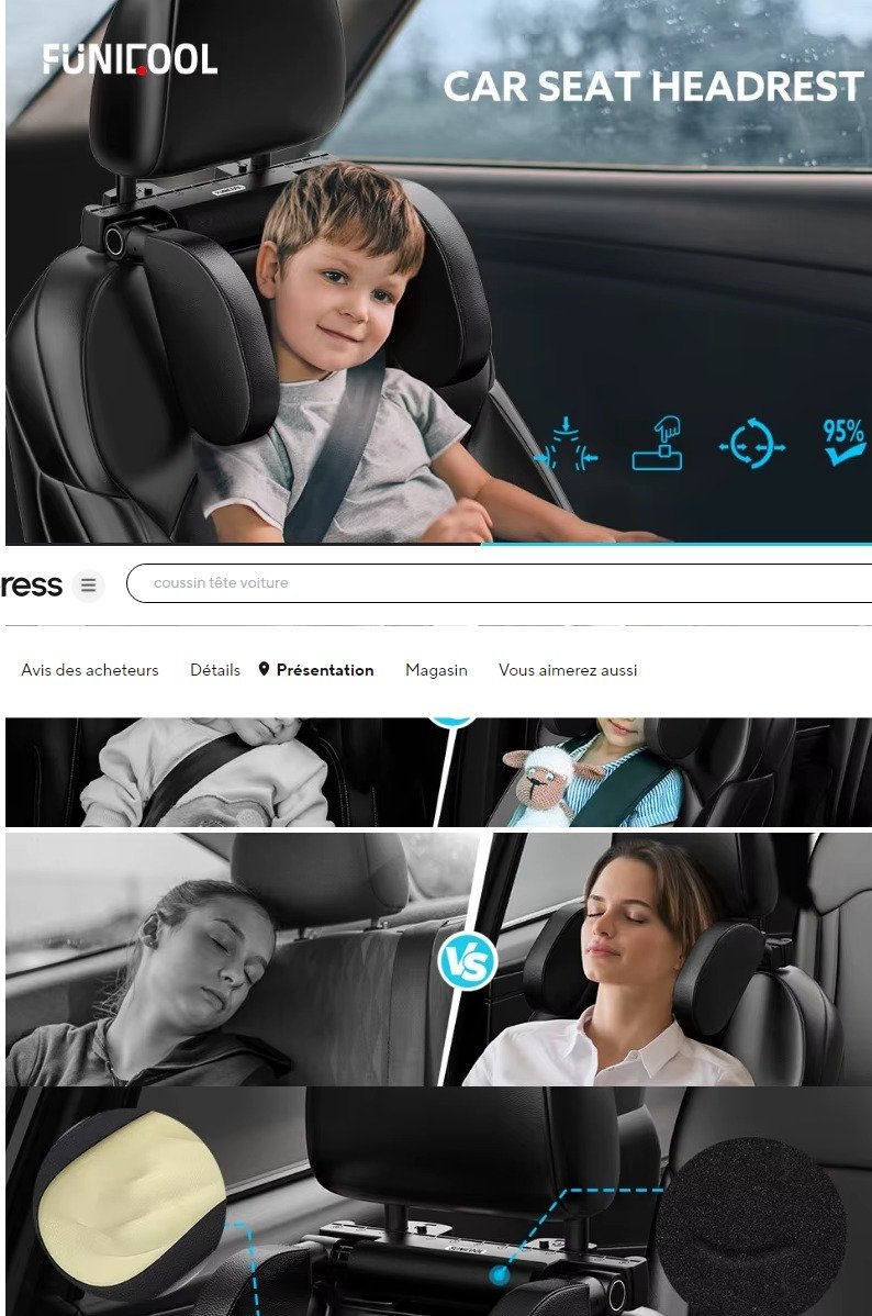 Appui Tête Voiture Funicool Coussin Cou Cuir Confort Installation Rapide