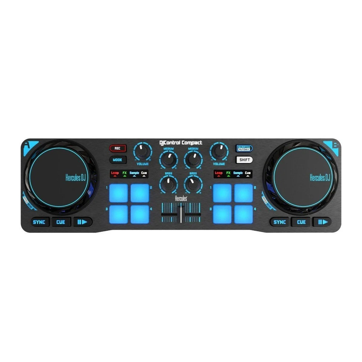 Hercules DJControl Compact – Contrôleur DJ USB 2 Decks + Jog Wheels
