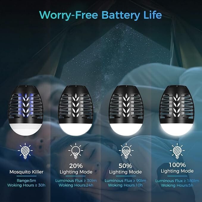 Lampe Anti Moustique Lampe de Camping 2 en 1 Tueur d’Insectes Electrique