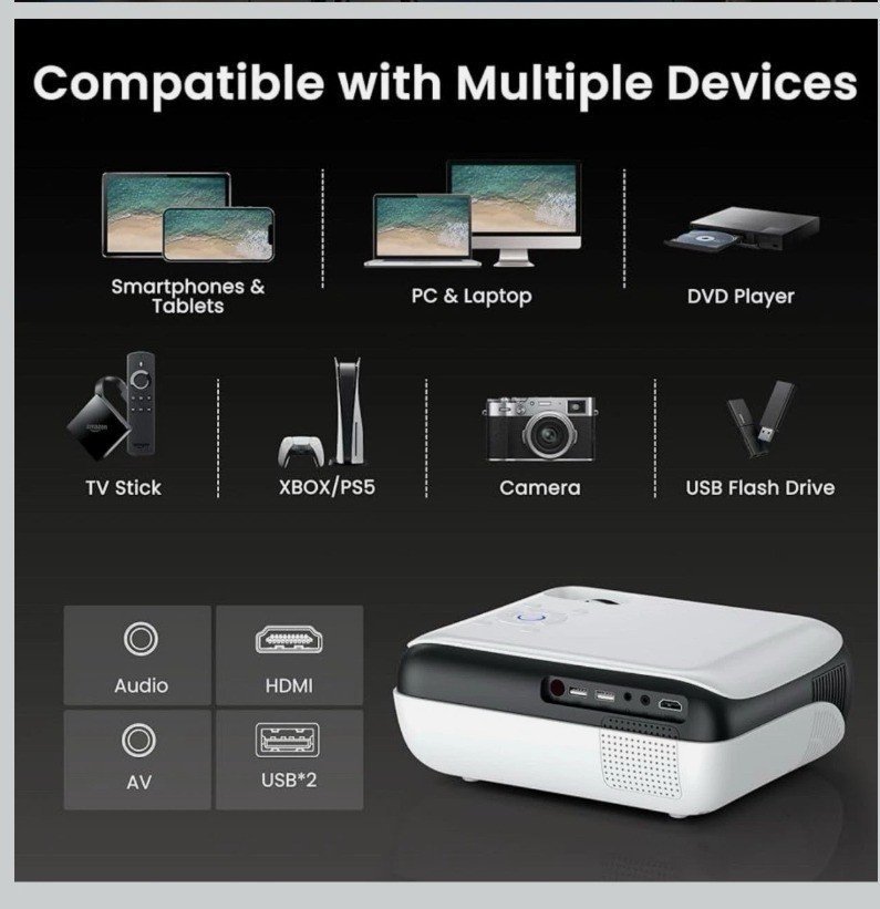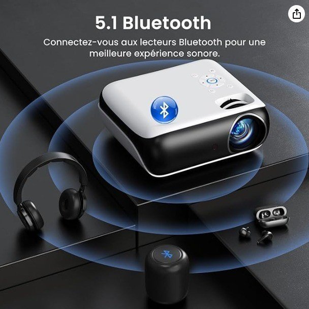 🎬 Transformez votre salon en cinéma privé ! Découvrez le Happrun H1, mini projecteur portable Full HD (1920×1080) parfait pour films, séries, jeux vidéo et présentations personnelles. 📌 Caractéristiques clés : ✔ Résolution native 1080P Full HD – images nettes et colorées ✔ Bluetooth 5.1 intégré – connectez facilement enceintes ou écouteurs ✔ Ports HDMI, USB, AV – compatible smartphones, PC, consoles et TV Stick ✔ Image jusqu’à 200″ – pour une expérience immersive à domicile ✔ Haut-parleurs intégrés – son immédiat 📱 Compatibilité maximale : Android, iOS, Windows, PS5, Xbox, Fire TV, Chromecast… 📦 Contenu : • 1x Projecteur…