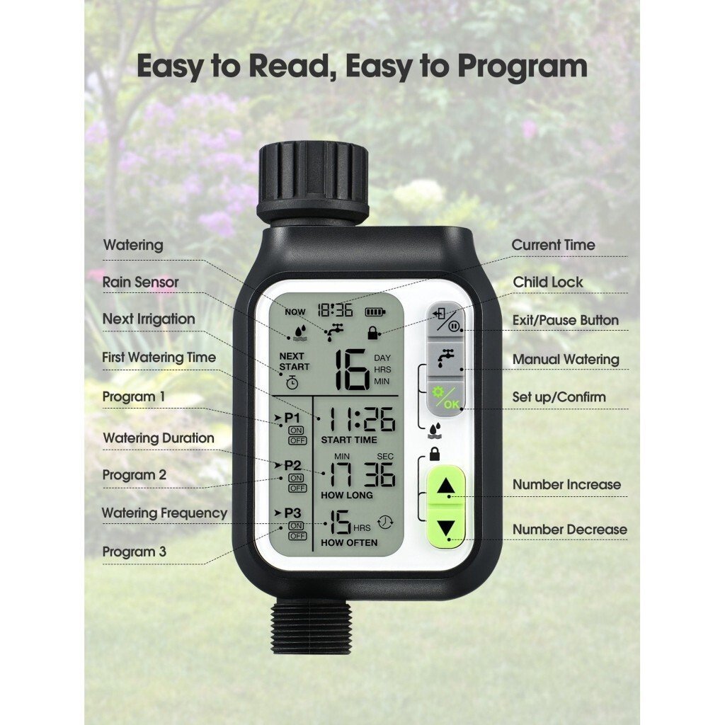 Minuterie à eau Homitt, 3 programmes d’arrosage séparés minuterie gicleur