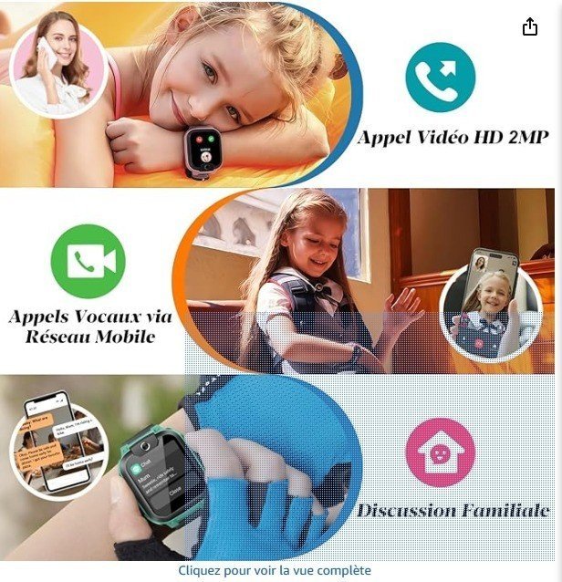 Articles de présentation (catégorie B), avec emballage d’origine ouvert. Nous avons soigneusement vérifié l’article, et il est en parfait état. Veuillez noter que l’emballage d’origine peut présenter des dommages. Grâce à la localisation GPS , vous pouvez suivre les déplacements avec précision en temps réel via l’application mobile votre enfant à la maison ou a l’extérieur. Cette montre connectée 4 G enfant permet de rester connecté entre membres de la famille par les appels vidéo, les messages vocaux et les discussions de groupe. Elle vous garantit une sécurité et un contrôle parental avec le blocage des appels inconnus , la…