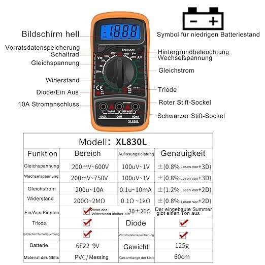 Multimètre numérique│XL830L │Haute précision & Affichage numérique│AC/DC