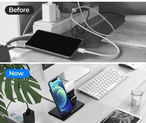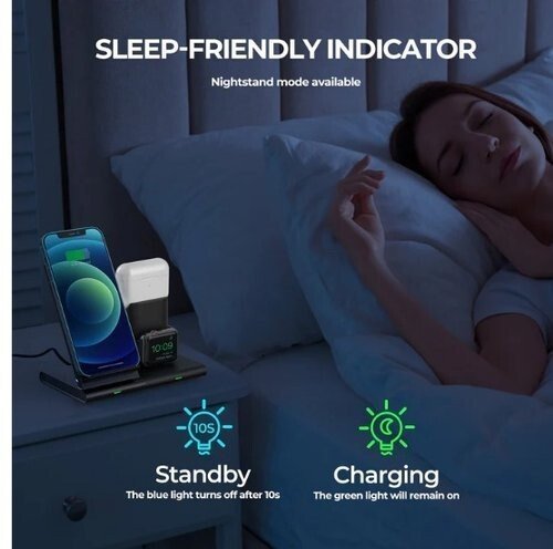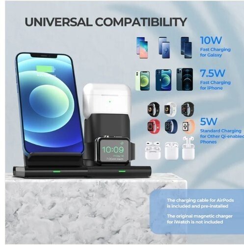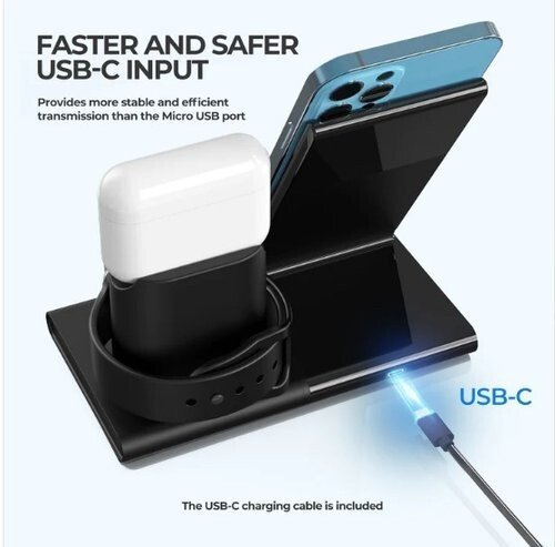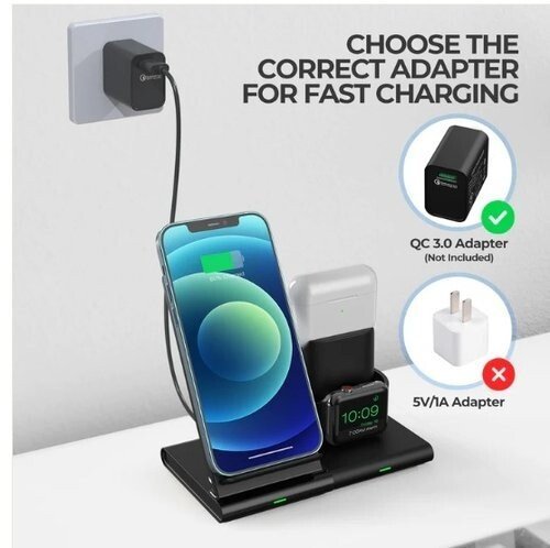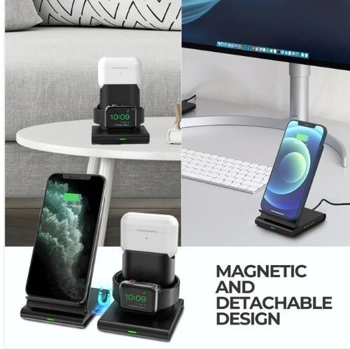 Support de charge sans fil avec iWatch et AirPods PA191B 3en1 Station de charge sans fil 3en1:la station de charge sans fil charge simultanément votre téléphone