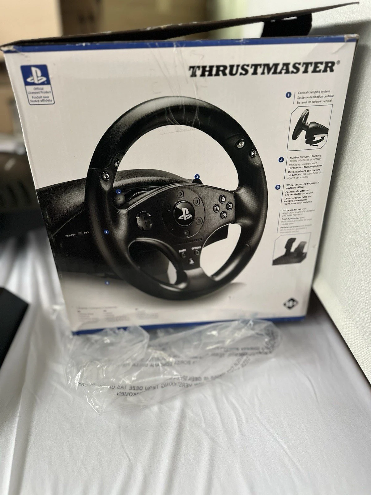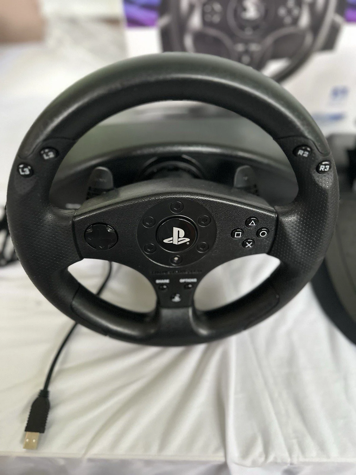 Caractéristiques: Volant + pédales, PS4/PS3, USB, testé OK, sans base, boîte d’orig